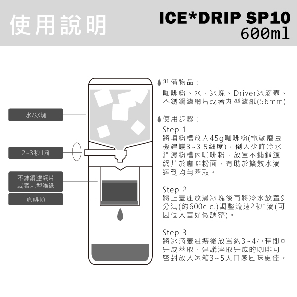水粉比:咖啡粉與冰的比例約為1:10~12,可隨個人喜好而定。